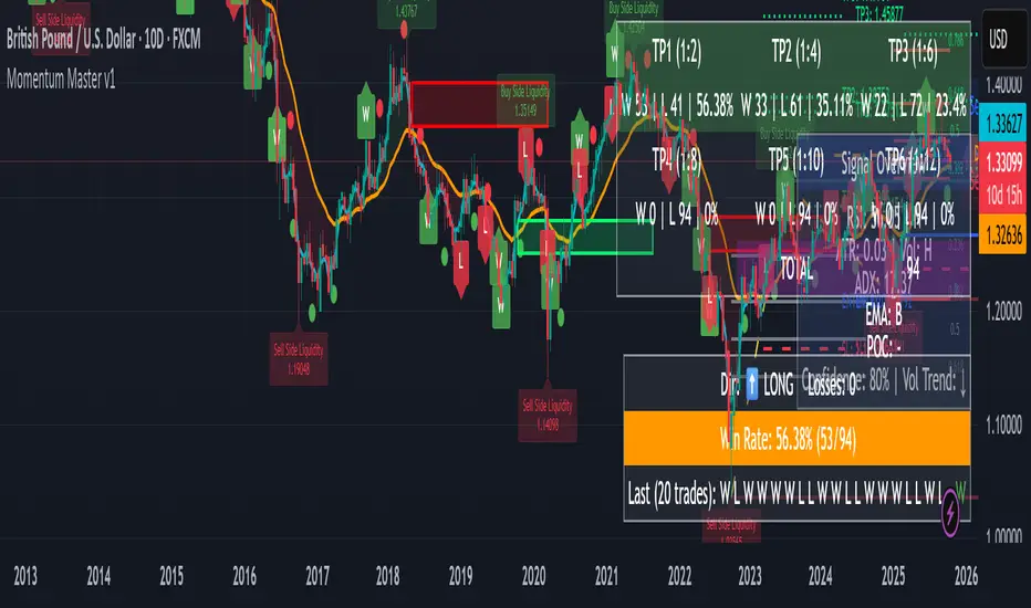 Momentum Master v1 - Multi-Filter EMA Crossover with Institutional Flow Analysis