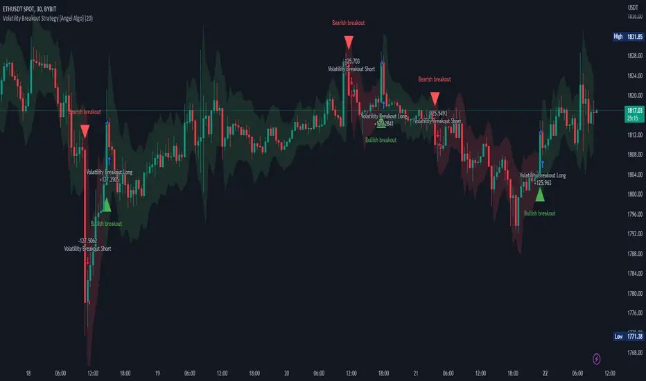 Using the ATR, the strategy calculates upper and lower breakout levels and plots them on the chart. The signals for long and short positions are generated when the price crosses above the upper breakout level or below the lower breakout level, respectively. They are confirmed by checking the current bar state.
