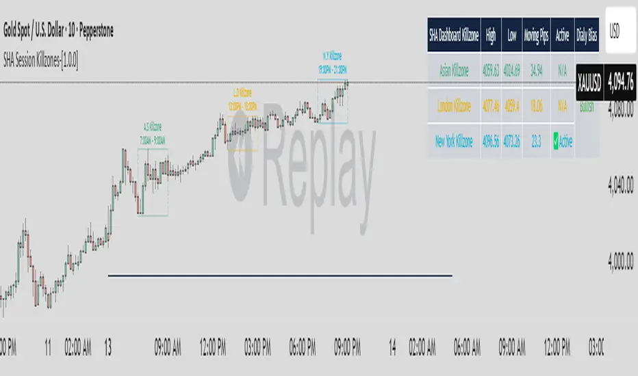 The SHA Session Killzones indicator is a precision tool built to help traders identify and analyze market activity within the three major trading sessions — Asian, London, and New York.