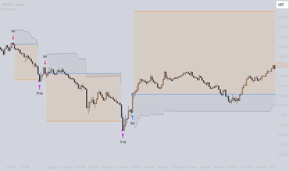 - Smooths short-term noise with an adaptive range + volatility smoothing algorithm so entries trigger on meaningful directional shifts.