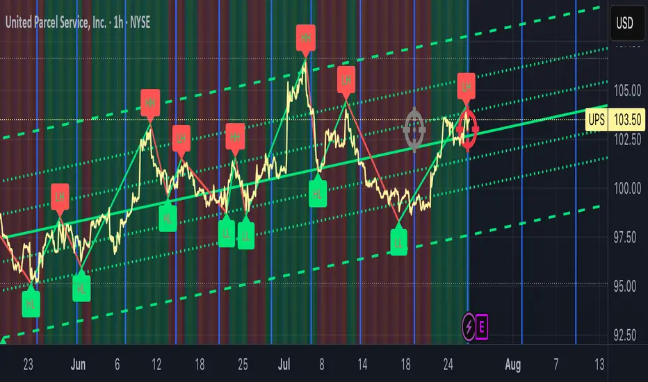 This overlay indicator automatically plots vertical lines at each weekly option-expiration timestamp (Friday at 3 PM CST) for both historical and upcoming periods, helping you visualize key expiration dates alongside your price action and regression tools. Shown is my Date Maker GPT vertical blue Lines, Linear Regression Channel(not part of my script) and zigzag++[LD] also not part of my script.