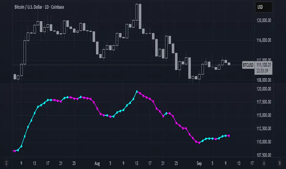 Dynamic Support & Resistance: The filter itself acts as a dynamic level. Watch for price to pull back and find support on a rising (Teal) filter in an uptrend, or to be rejected by a falling (Pink) filter in a downtrend.