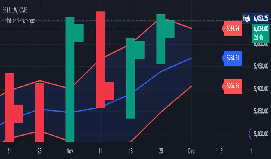 2.Plot the Envelope Top and Bottom lines based on averages of previous highs and lows, which represent key areas of resistance and support.