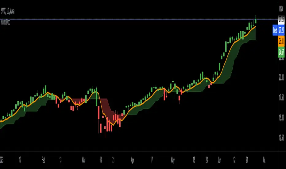 - Trend Identification: When the IMA is above the trailing stop (cloud), it indicates an uptrend, and when it's below, it indicates a downtrend.