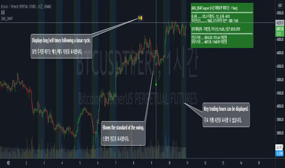 - 스윙매매에 가장 적합성을 지닌 신호를 찾고 HEART ♥ 표기를 발생시킵니다. 하트시그널은 스윙분기점으로 활용합니다.
