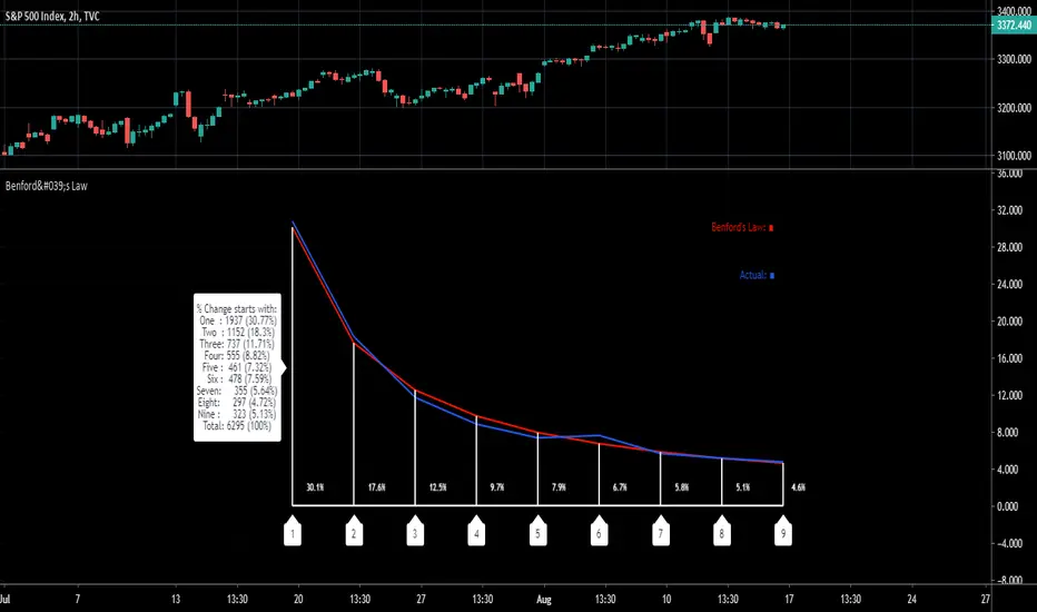 Now, Benford's Law can be utilised by anyone and observed across any financial data-set. Apply this to prices, financial data, or health statistics on TradingView!