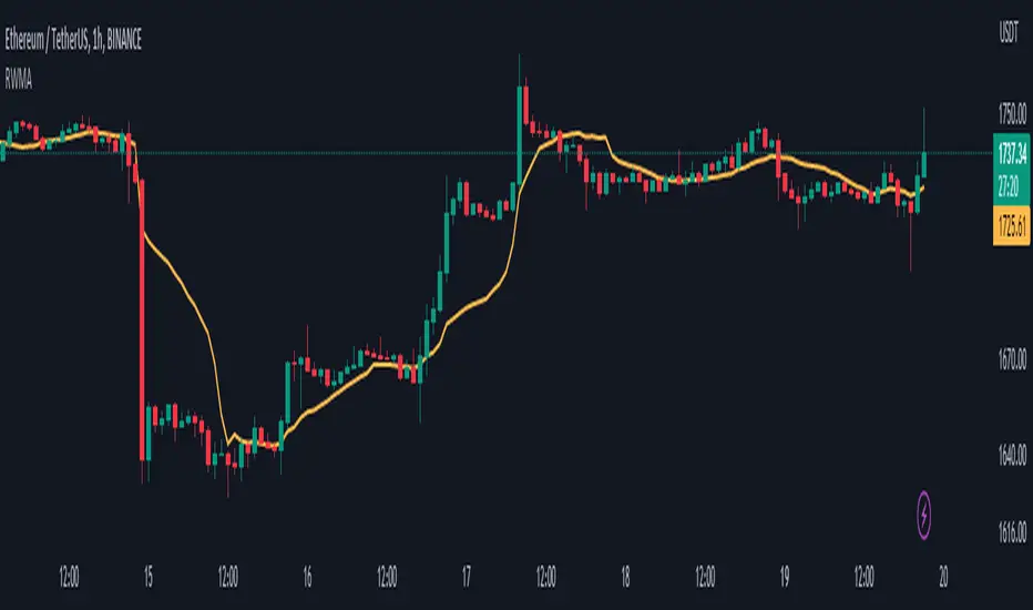 The Range Weighted Moving Average (RWMA) is a variation of the traditional moving average that incorporates the price range within each period as a weighting factor.