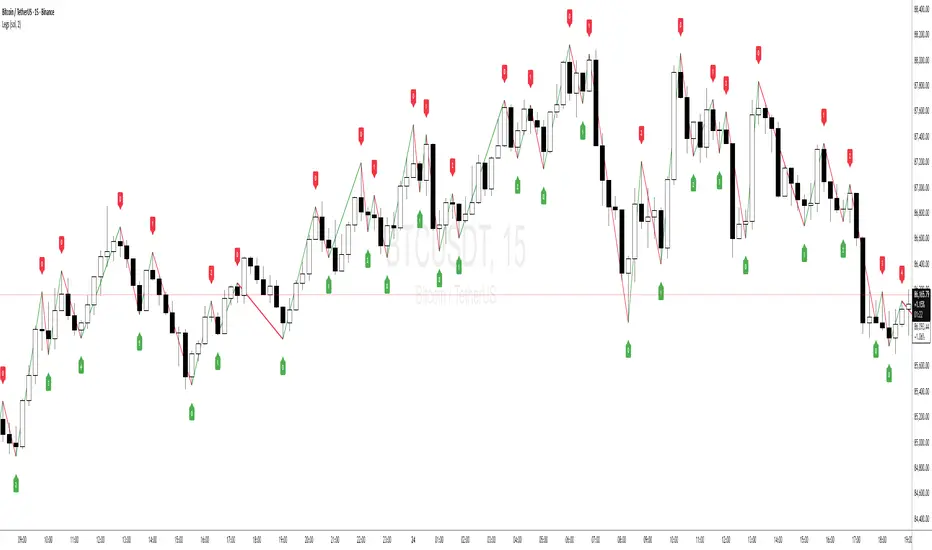 Rooted in Al Brooks' leg counting philosophy from "Trading Price Action Trends," this draws zigzag lines connecting swing points: green for up legs (until low < previous low), red for down legs (until high > previous high). Updates dynamically to new extremes, with optional count labels (0 resets on stronger pivots). Visualizes twists in channels or ranges—markets always test with two legs; use for pullback entries or reversals.