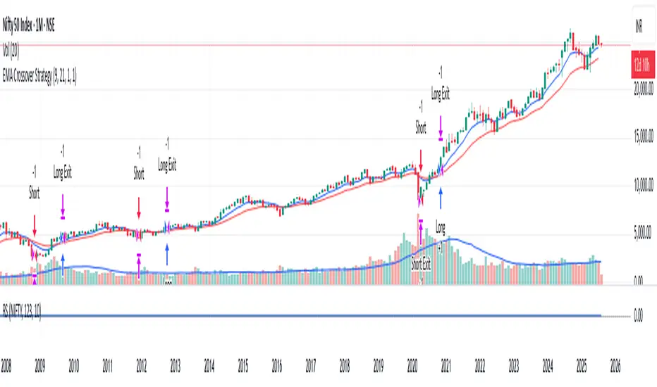 Backtesting an EMA crossover strategy for 13/34 EMA Crossover daily