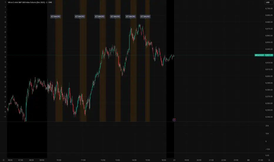 - Highlights the exact 20-minute ICT Macro windows (09:50–10:10, 10:50–11:10, etc.) in real New York time