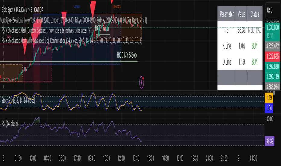 by A.Alasfoor RSI + Stochastic Alert with Doji Confirmation