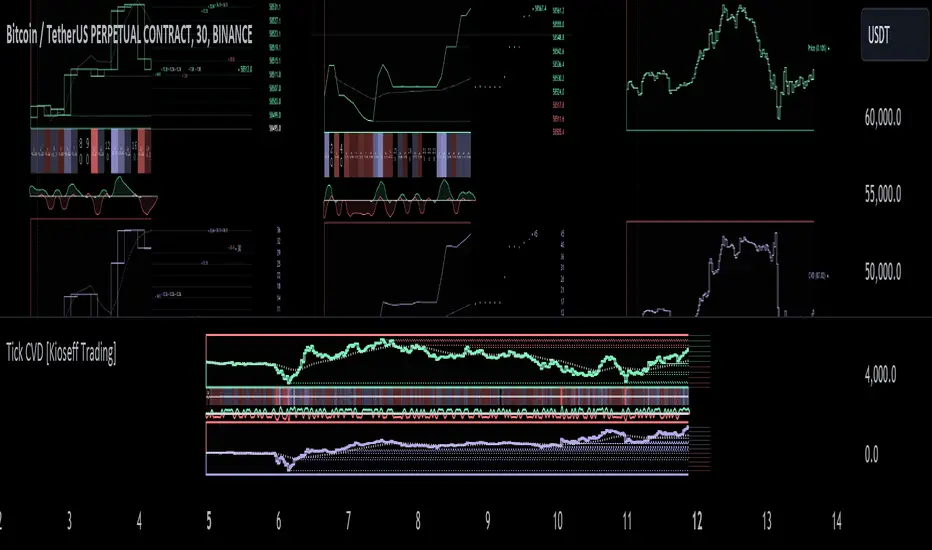 This script, however, improves on that logic by utilizing live ticks. Instead of relying on time-series charts, it records up ticks as buying volume and down ticks as selling volume. This allows the script to create a more accurate CVD, delta, or price tick chart by tracking real-time buying and selling activity.