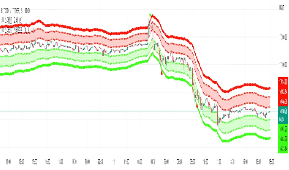 도출해 낸 범위에 멀티플을 대입하여 밴드를 증가 시켰으며 각 밴드들은 역할이 존재합니다.