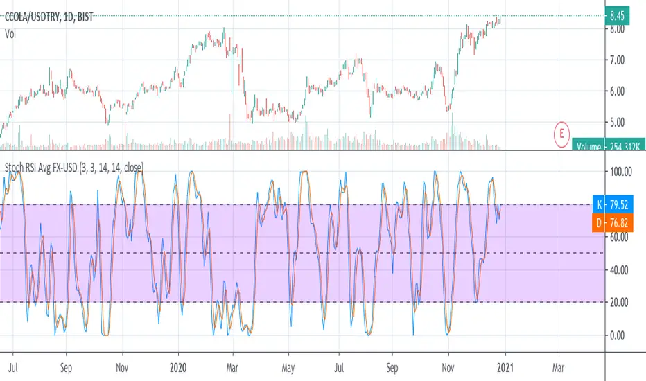This script calculates average stochastic RSI of local currency and USD price of the stock.