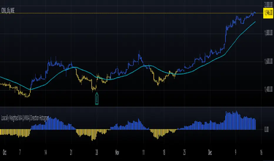 The Locally Weighted Moving Average (LWMA) Direction Histogram indicator is designed to provide traders with a visual representation of the price momentum and trend direction. This Pine Script, written in version 6, calculates an LWMA by assigning higher weights to recent data points, emphasizing the most current market movements. The script incorporates user-defined input parameters, such as the LWMA length and a direction lookback period, making it flexible to adapt to various trading strategies and preferences.