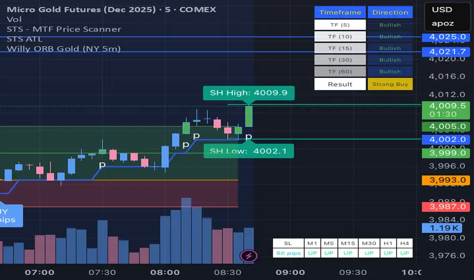 What it does:Plots the opening-range high/low for the main Gold sessions (Shanghai, Tokyo, Sydney, Frankfurt, London, New York 5-minute OR by default). It projects TP1/TP2 expansion targets, supports a timezone offset so opens line up with your broker, and includes breakout alerts on confirmed closes.