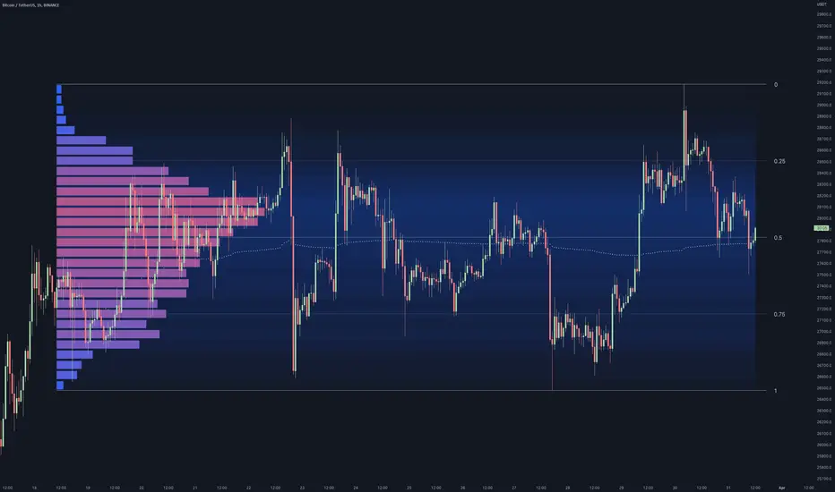 The Interactive Range Analysis script is an essential tool for analyzing price ranges. It automatically draws important range levels, generates a Volume Profile or Open Interest profile and horizontal/vertical heatmaps, plots the anchored VWAP, draws Fibonacci levels, and much more.