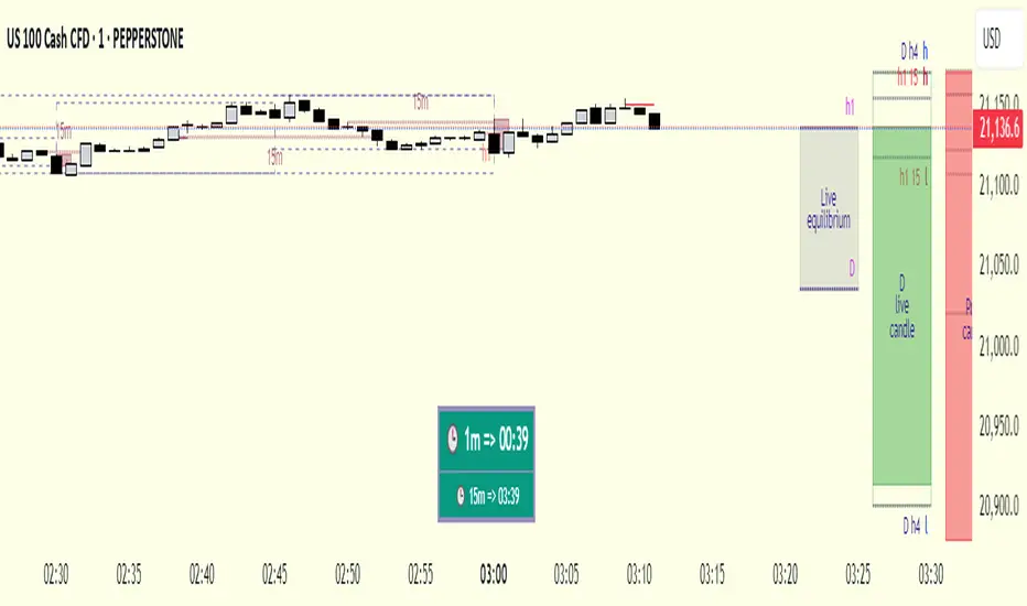 While working on equilibrium levels of both higher timeframes and the current timeframe, I noticed that when a current candle closes above/below the previous HTF candle's high/low, price often respects the part of the candle that caused the break — which I refer to as the Last Block. When respected, price tends to continue with momentum; when lost, a pullback or reversal often follows.