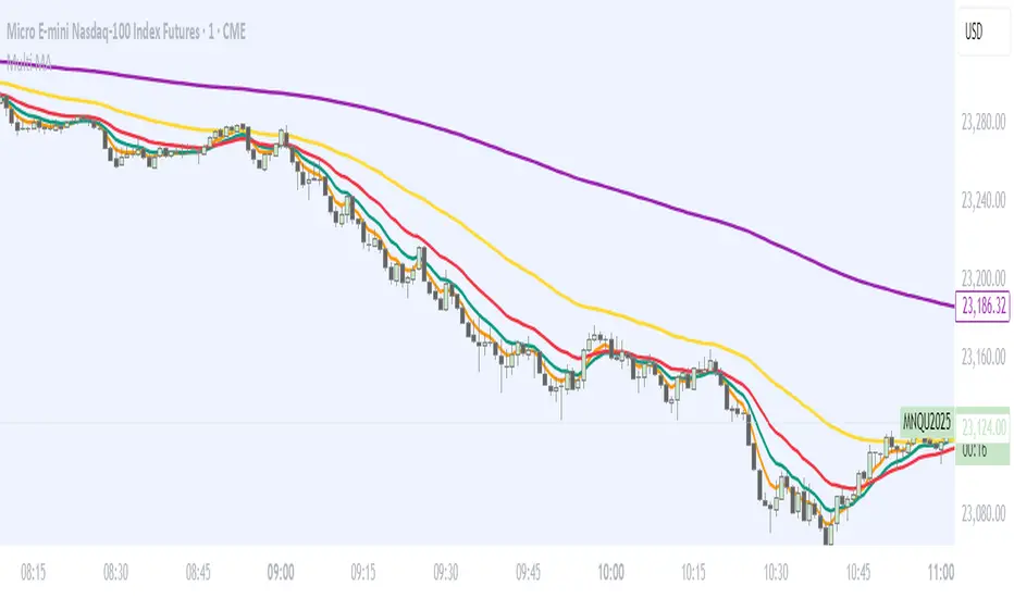 This script adds up to 5 moving averages to your plot!Both type and length are customizable.