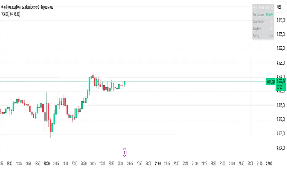 - 🕯️ "True Candle" Analysis: Determines if a candle is structurally bullish or bearish based on where the price closed within its total range.
