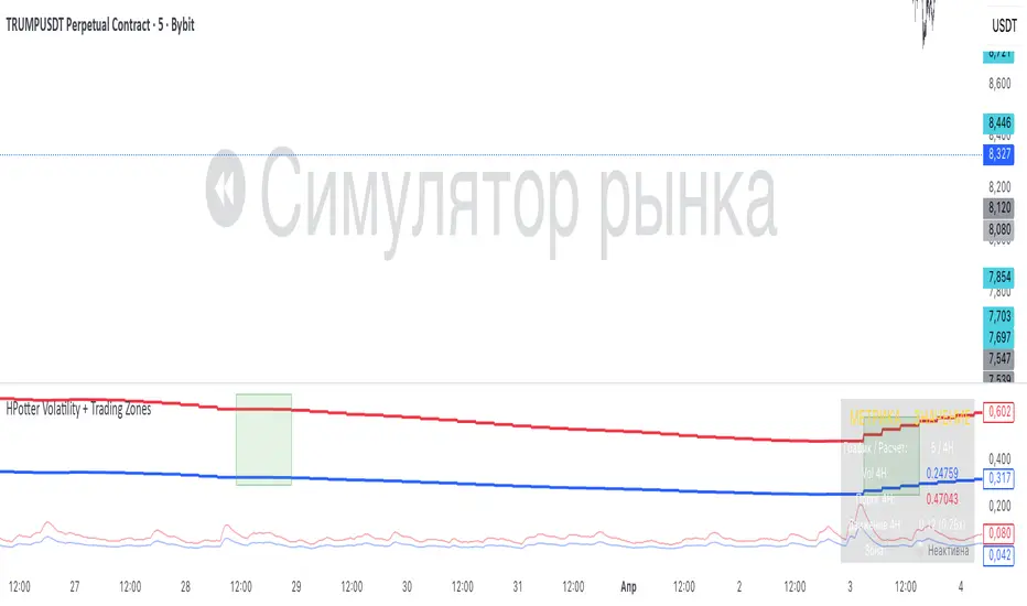 The indicator identifies an increase in asset volatility and shows the optimal zone for searching for TVH