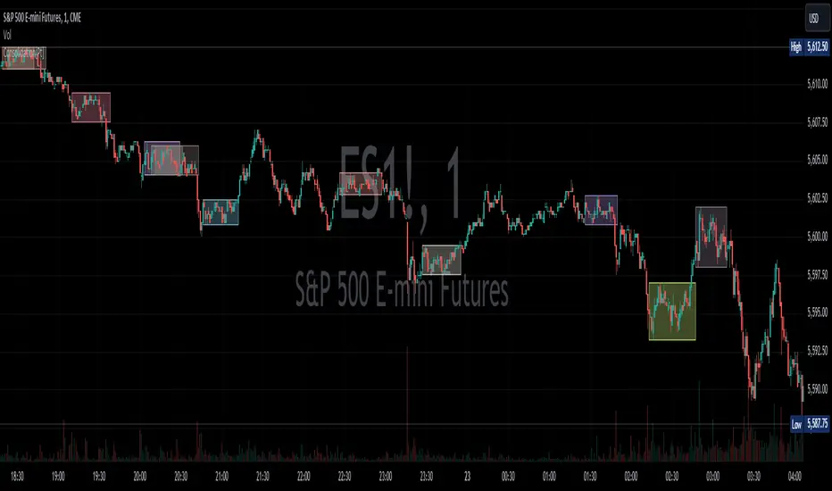 After extensively reviewing the existing consolidation detection tools in the TradingView library, I found that none fully met my expectations. Some tools were overly sensitive, producing too many invalid ranges, while others lacked the necessary sensitivity. Consequently, I decided to develop my own tool. I hope that you, fellow traders, find it valuable and enjoy using it.