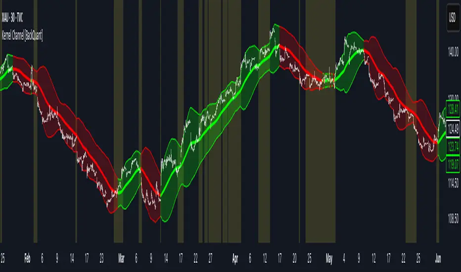A non-parametric, kernel-weighted trend channel that adapts to local structure, smooths noise without lagging like moving averages, and highlights volatility compressions, expansions, and directional bias through a flexible choice of kernels, band types, and squeeze logic.