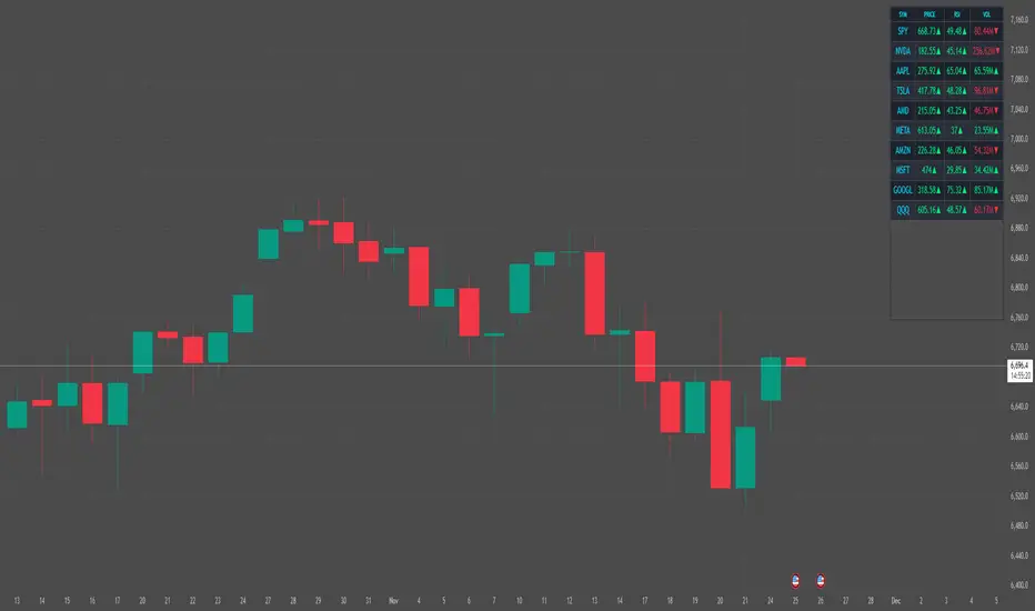 Perfect for day traders, swing traders, or anyone who wants a consolidated watchlist without switching charts constantly.