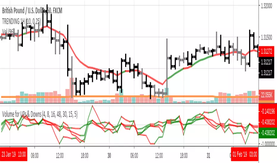 it's trending script, when all the lines on the indicator on closed candle are higher than past value and volume is higher than volume average it's BUY order when all the lines on the indicator on closed value are lower than past value and volume is higher than average it's SELL order, have in mind this script was designed for closed value candles and it's trending script, it will not predict reversals or pivots. it will show you what's really happening on the chart.