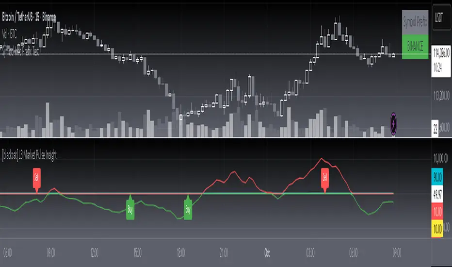 The [blackcat] L3 Market Pulse Insight provides comprehensive analytics by evaluating key price metrics to reveal critical market sentiment and potential trade opportunities 📊🔍. This advanced indicator leverages proprietary calculations involving Simple Moving Averages (SMAs), Exponential Moving Averages (EMAs), and custom thresholds to deliver detailed insights into current market dynamics 🚀✨.