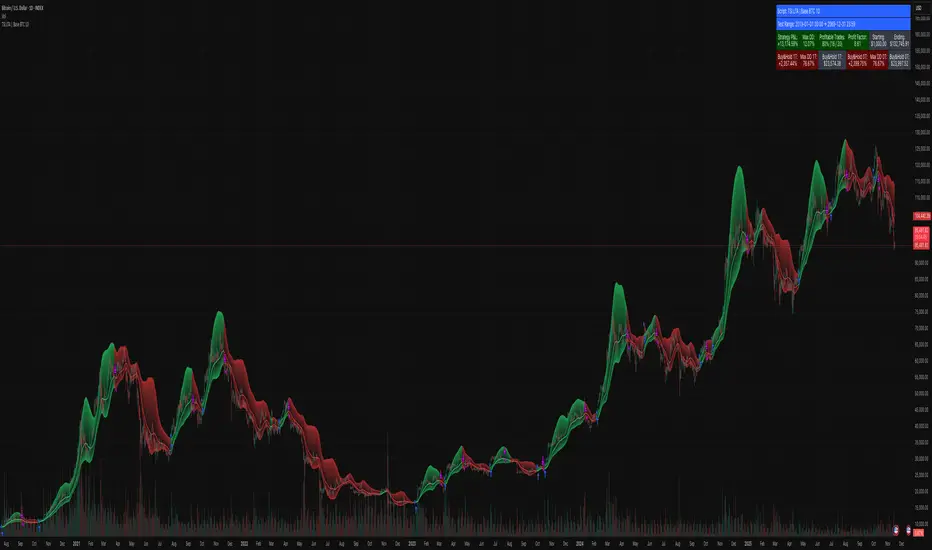 In practice, these settings let the user choose between a more “aggressive” trend follower (shorter lengths, smaller bands) or a more “patient” one.