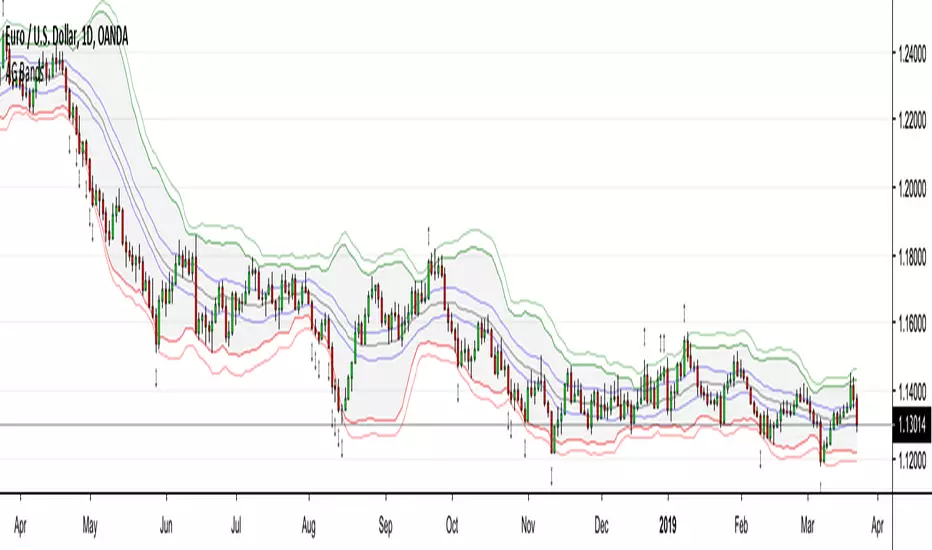 - displaying the Average Highs/Lows (blue lines) to create a Moving Band