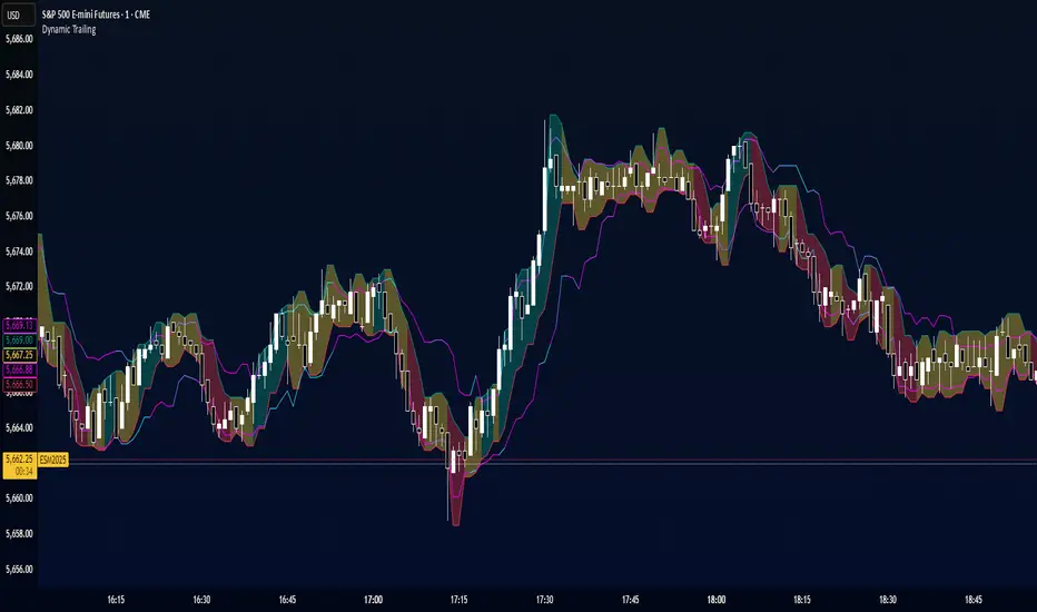 Dynamic Trailing is an indicator that reacts quickly to shifting candle structures, using a dynamic trailing lines on either side, essentially "counting" the confluences for either side, and highlighting the winning side.