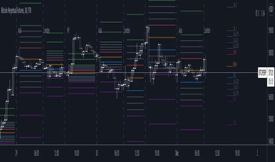 Shows the Initial Balance and range extensions for either the Daily session or individual market sessions (Asia, London, New York).