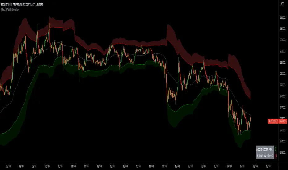 A unique and valuable feature of this script is the addition of a monitor that counts the number of times the price crosses above the Upper Deviation level 2 and below the Lower Deviation level 2 within a user-defined lookback period. This monitor is displayed as a table in the bottom right corner of the chart and can be enabled or disabled through an input option.