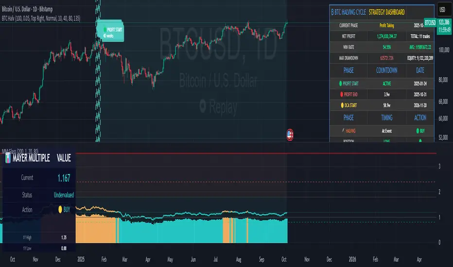 Accumulation Strategy: Buy when Mayer Multiple drops below 1.0, especially during extreme dips below 0.8