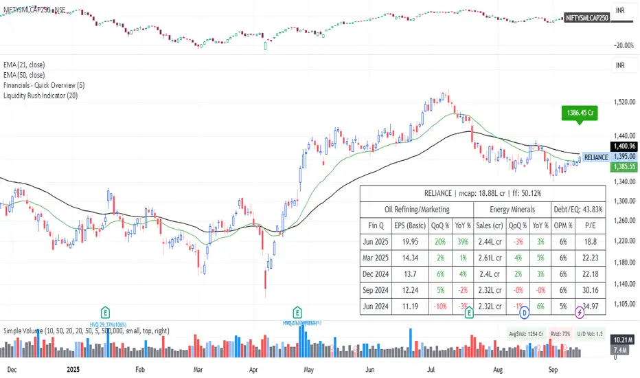 Displays key quarterly financial metrics including EPS, Sales, P/E ratio, and Return on Equity (RoE) in a compact, easy-to-read table directly on the chart. Perfect for quick fundamental analysis and trend tracking.
