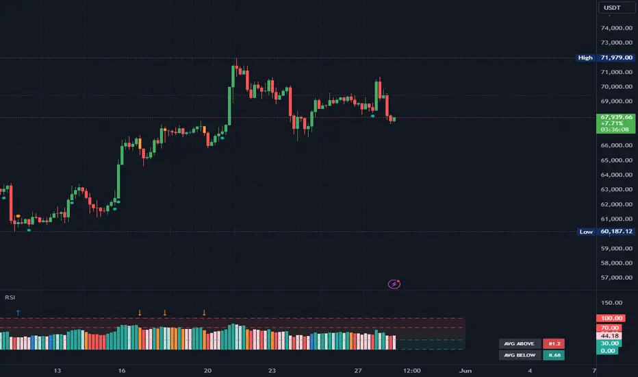 This indicator is a visually improved version of RSI. It makes it much easier to see what's happening by simplifying those confusing, intersecting lines. With this, you can detect the RSI direction more clearly. All the features are also explained in the tooltips of the input fields. Some extra features are included, such as average top and bottom calculation, standard deviation and divergences.