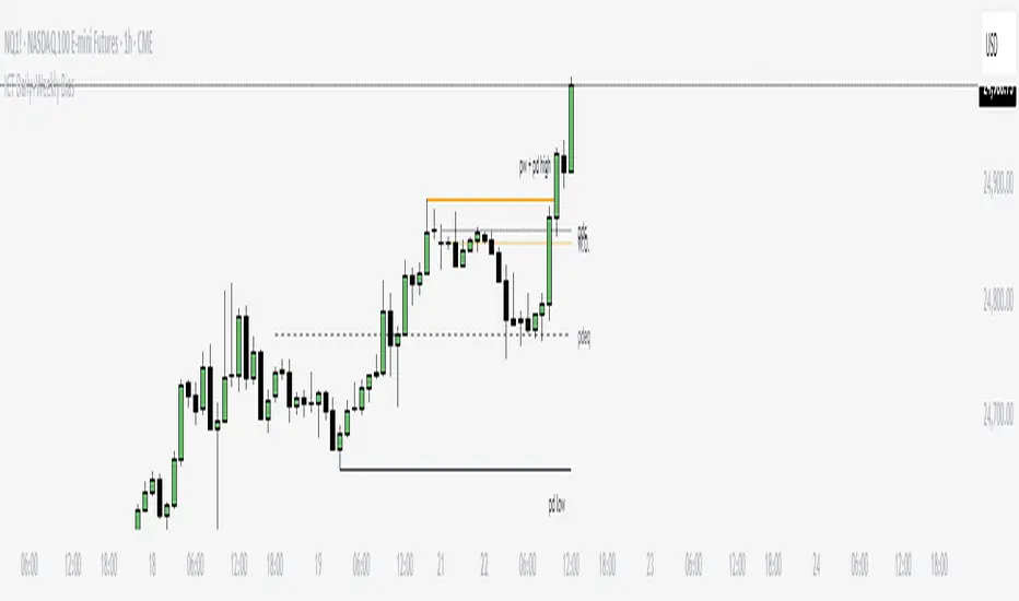 • PDH/PDL: Prior day high/low.