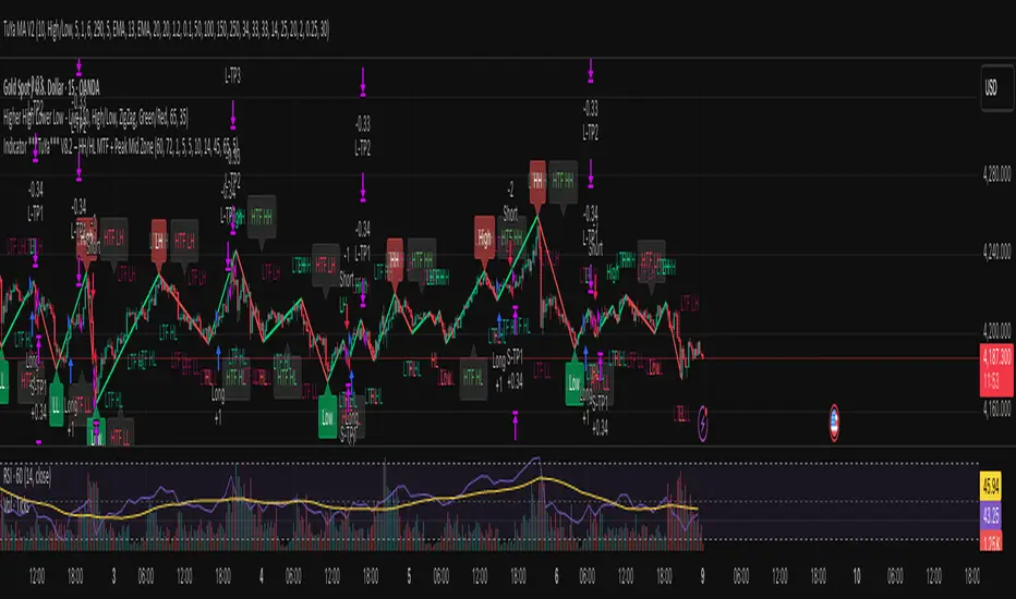 Indicator ***TuYa*** V8.2 – HH/HL MTF + Peak Mid Zone