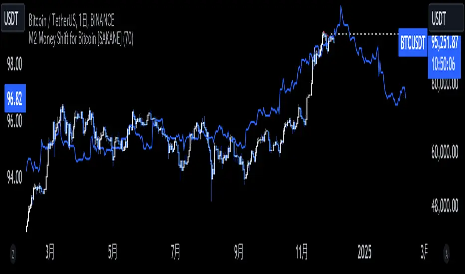 M2 Money Shift for Bitcoin was developed to visualize the impact of M2 Money, a macroeconomic indicator, on the Bitcoin market and to support trade analysis.
