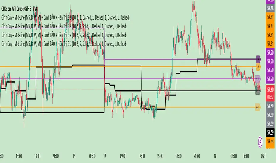 This indicator displays important Mid-Line levels (D, D-1, W, W-1, M, M-1) on the chart and provides alerts when the price touches these levels.