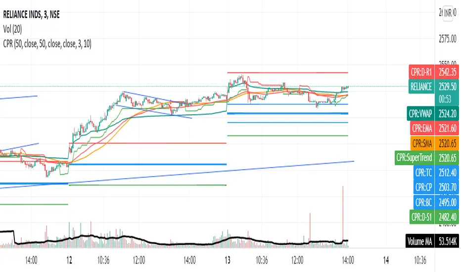 In Addition to the CPR and Pivot , this script will allow user to Add 4 more Indicators - SMA , EMA , VWAP and SuperTrend as well.