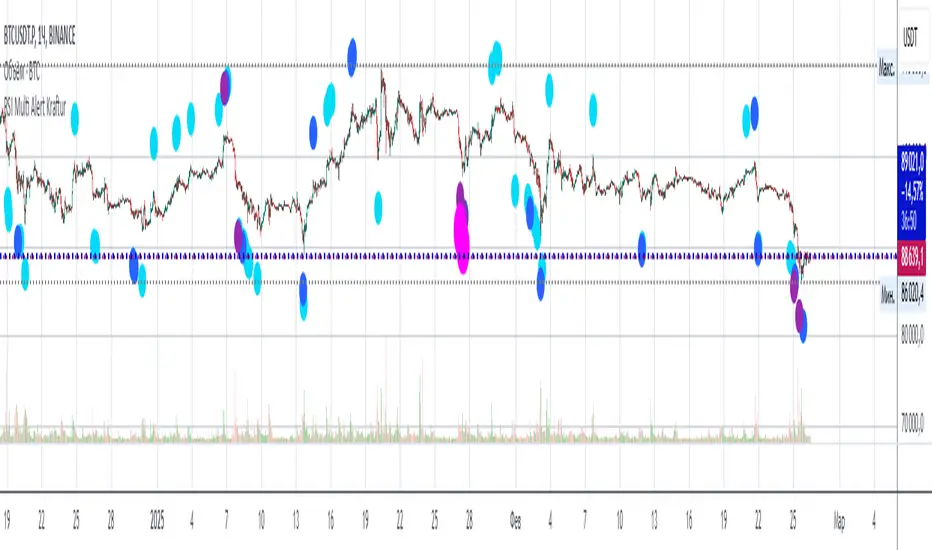 This indicator is best used as a scanning tool for finding entry points across multiple assets. Set up alerts for your entire watchlist of coins or stocks to detect when RSI crosses the configured levels in real time. It’s particularly effective in volatile markets or for traders employing multi-timeframe analysis. Combine it with other indicators (e.g., support/resistance or trend filters) to confirm signals and improve accuracy.