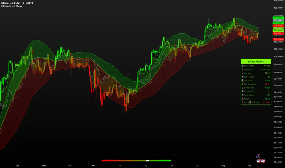 Advanced Signal Processing: The five-mode signal combination system with momentum deviation integration provides significantly more nuanced analysis than standard Bollinger Band implementations. The state tracking and visual feedback systems offer professional-grade market analysis tools.