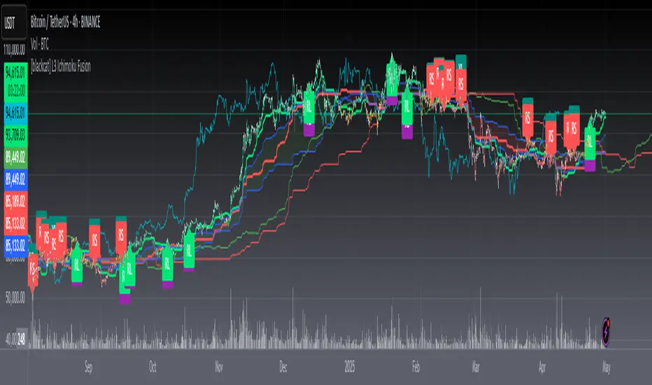 The [blackcat] L3 Ichimoku Fusion is a sophisticated multi-layered technical analysis tool integrating classic Japanese market forecasting techniques with enhanced dynamic elements designed specifically for identifying potential turning points in financial instruments' pricing action.