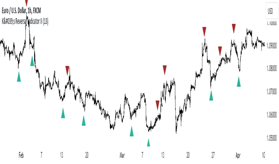 K’s Reversal Indicator II uses a moving average timing technique to deliver its signals. The method of calculation is as follows: