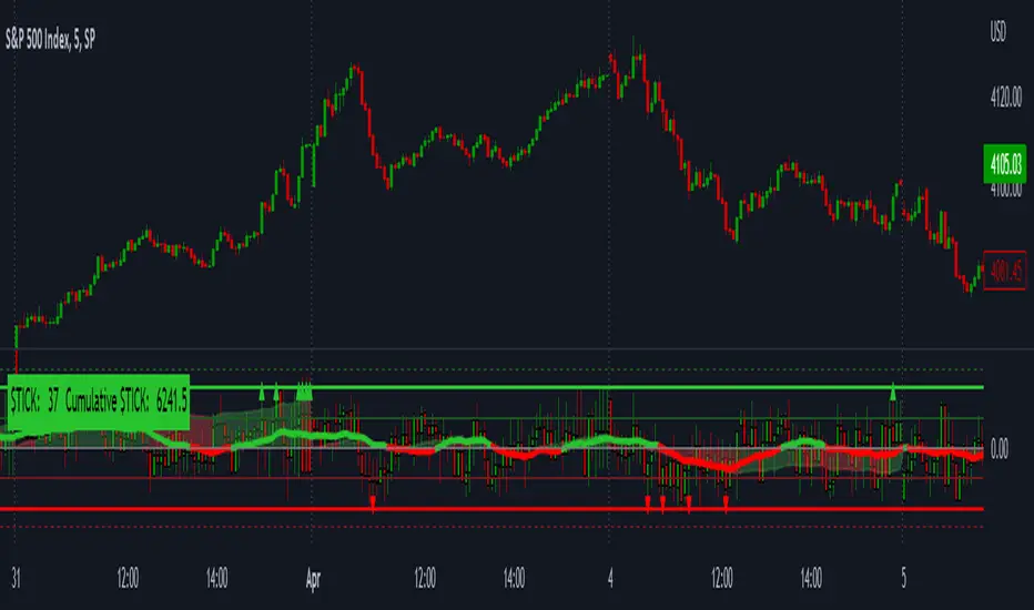 TICK extremes. This indicator also includes: a simple trend gauge that can visualize the bias for the day, cumulative tick cloud which is showing the cumulative strength of either longs & shorts on the day.