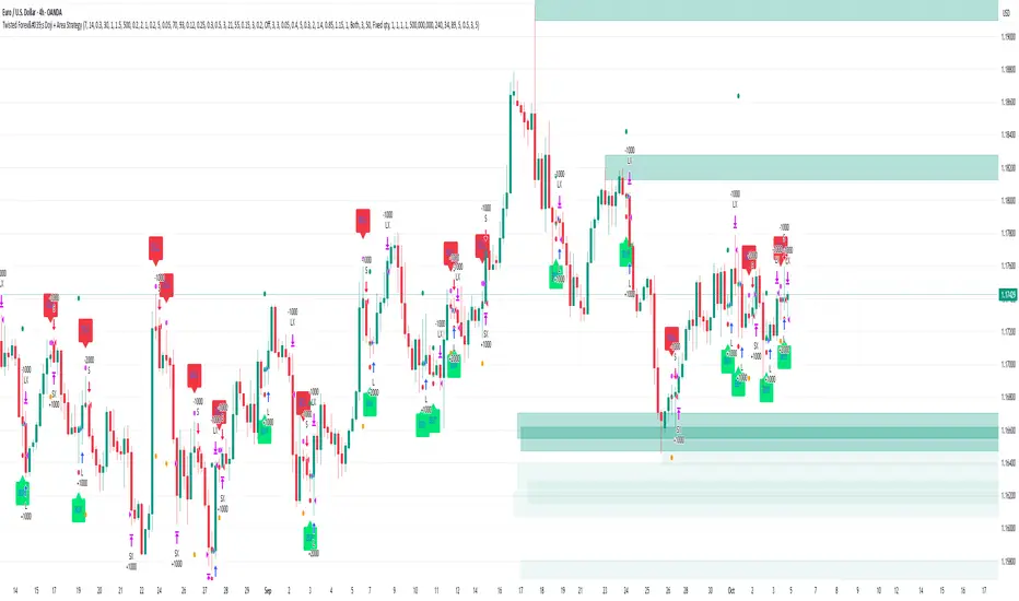 • Each swing spawns a horizontal area centered at the pivot price with half-height = zoneHalfATR × ATR.