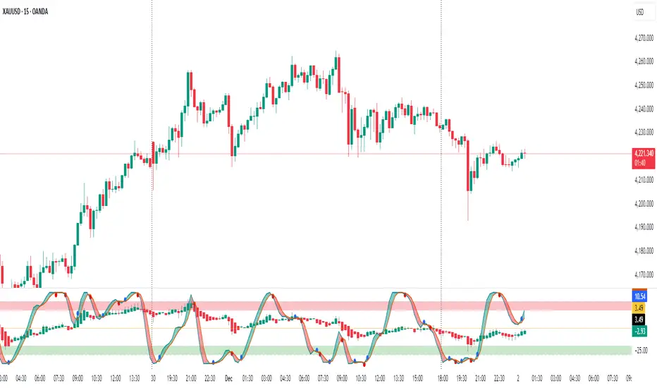 In short, it’s a compact multi-timeframe momentum tool that blends HARSI candles, RSI, and Stochastic signals into a single panel with configurable alerts.